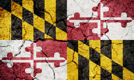 flag of Maryland at cloudy sky background on sunset. Patriotic concept about state. 3d illustration,