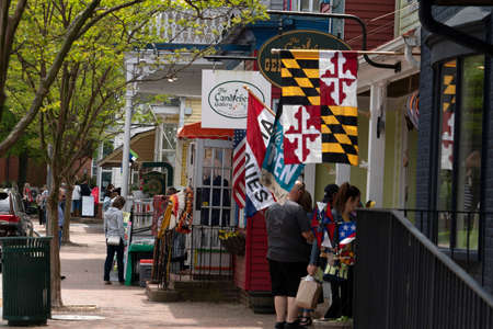 ST MICHALES, MARYLAND - USA - APRIL 26 2019 - the annual Wine tasting venue WineFest, old town is full of tourists