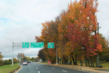 Newport, Delaware, U.S - November 11, 2021 - The view of the road surrounded by stunning colors of fall foliage