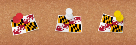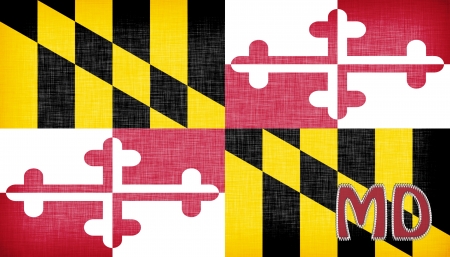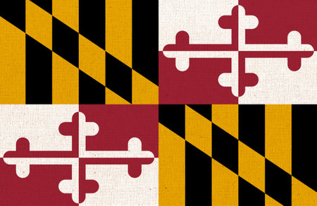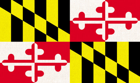 Flag of American state Maryland on fabric surface. Maryland state flag on textured background. Colored flag of Maryland on fabric surface. Symbol of territory. Official American state symbol