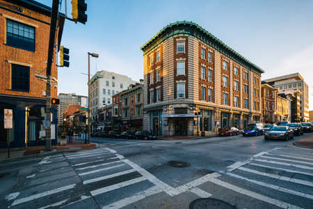 The intersection of Mulberry Street and Charles Street in Mount Vernon, Baltimore, Maryland.