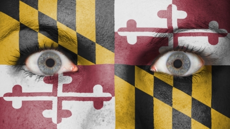Close up of eyes. Painted face with flag of Maryland