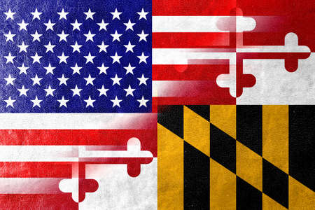 USA and Maryland State Flag painted on leather texture