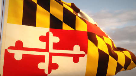 Maryland US State Flag low angle. 3D artwork