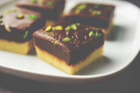 Choco Vanilla Pateesa or chocolate mawa barfi or or two layered burfi, Indian sweet or dessert
