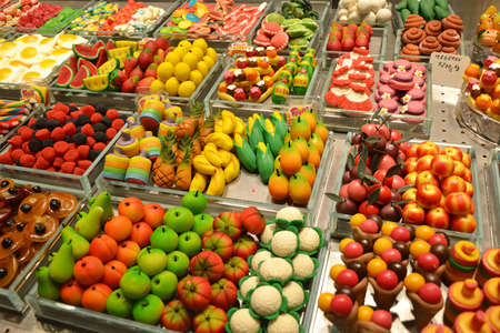 Variety of fruits on colorful marzipan. St. Dionis famous saint celebration in Spain. San Dionisio. October 9 th