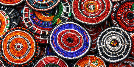Colorful African Beaded Circles Ethnic Pattern Design Texture Background red art blue black white