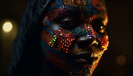 Colorful fusion of modern art and cultural beauty, this striking piece captures vibrant expressions with intricate detail. A mesmerizing visual journey. Generated A.I.
