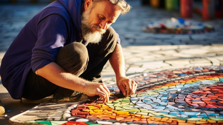 Roman artist creating elaborate mosaic on city square