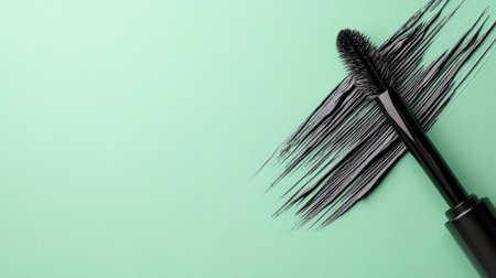 Black Mascara Brush with Textured Stroke on Mint Green Background.