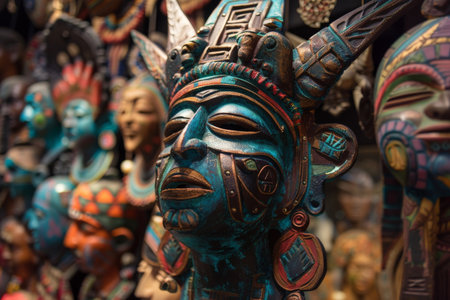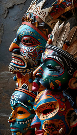 Vibrant Latin American Folk Masks at a Cultural Event.