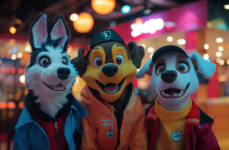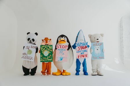Group of mascots doing party. Concept about carnival, animals rights and lifestyle