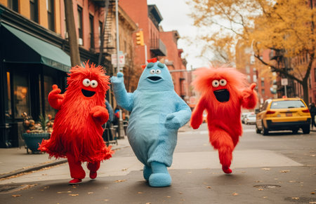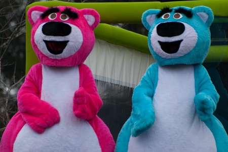 Russia, Gatchina, May 14, 2022: Animators in costume on the city street - work in advertising