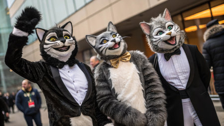 Participants embrace their inner feline showcasing elegant cat costumes complete with sleek fur patterns and mischievous expressions..