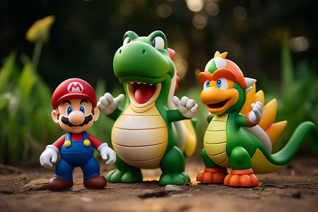 Captivating Visuals: Exquisite 3:2 Shot of Super Mario, Luigi, and Yoshi Figurines