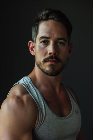 Portrait of a handsome young man in a grey tank top.