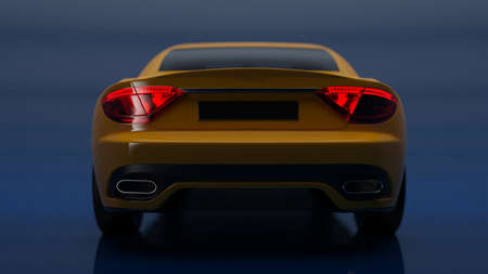 auto yellow. 3d illustration of fragments of vehicles on a blue uniform background.