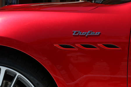 Modena, Italy, july 1 2021 - Maserati Ghibli Trofeo sport car, Motor Valley Exhibition
