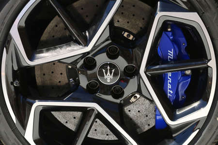 MODENA, ITALY, July 1 2021 - Motor Valley Fest exhibition, Maserati MC20 wheel detail