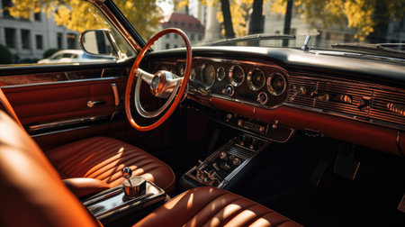 Vintage Car Cabin Polished Chrome Accents Plush Upholstery