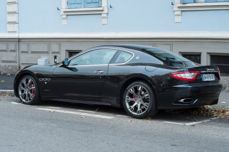 Mulhouse - France - 5 October 2017 - Black granturismo Maserati parked in the street