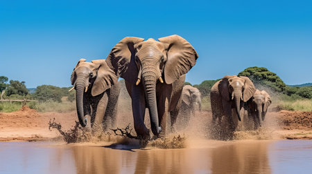 Group Adult Elephants in savannah water. Created with Generative AI