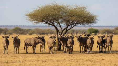 Antelope in African savanna under acacia tree