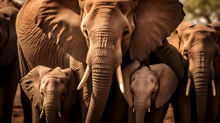 A baby elephant is nestled close to its mother in gentle morning light, embodied warmth, care, and the bond of family in nature.
