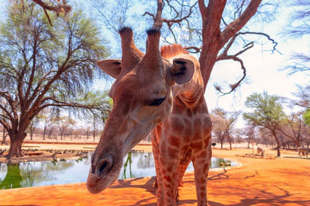 Wild african animals. Closeup namibian giraffe. The tallest living terrestrial animal and the largest ruminant.