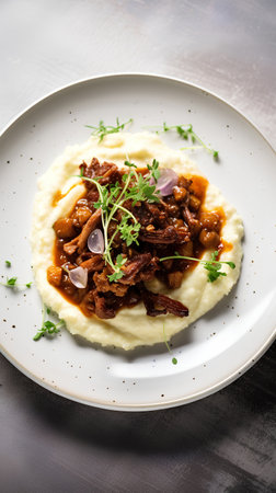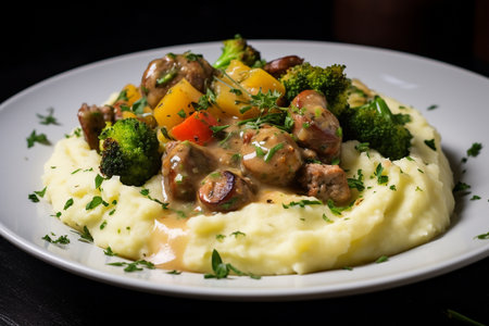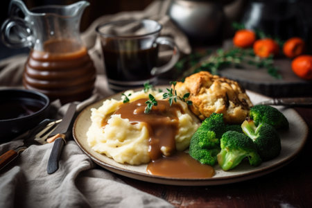plant-based and vegan take on classic comfort food, with mashed potatoes and gravy, created with generative ai