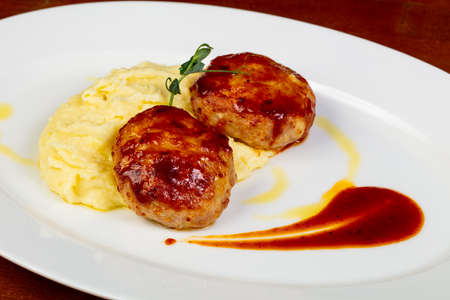 Delicious meatballs on hot potato puree