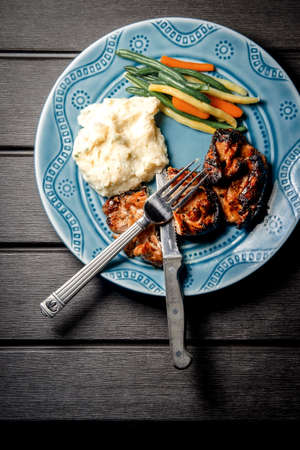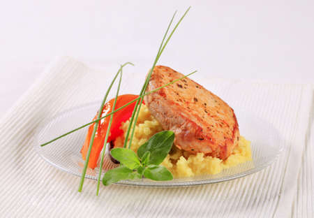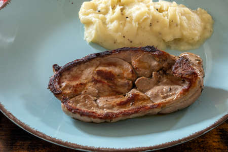 Mashed potatoes with grilled pork at local restaurant