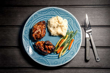 pork chop with vegetables.close up