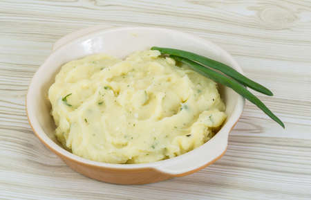 Mash potato in the bowl with green onion