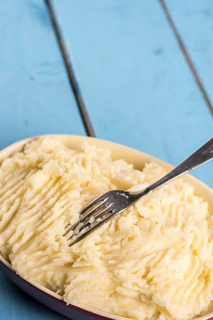mashed potato healthy food on wooden background