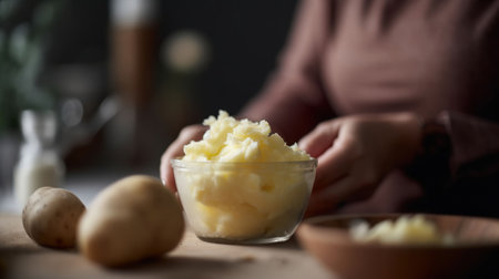 AI Generated. Fresh homemade creamy mashed potato in bowl