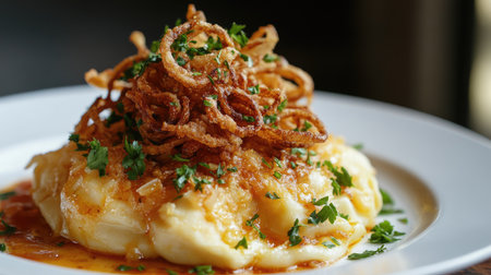 Mashed Potatoes with fried onions in plate
