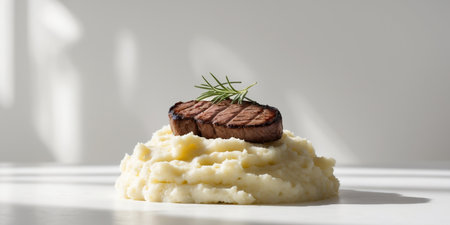 AI Generated. Grilled beef medallion on mashed potatoes