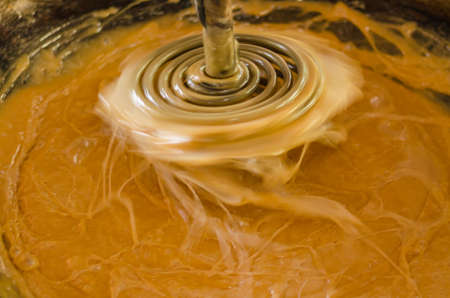 Process of making coconut sugar. Food products in Samut Songkhram province, Thailand.