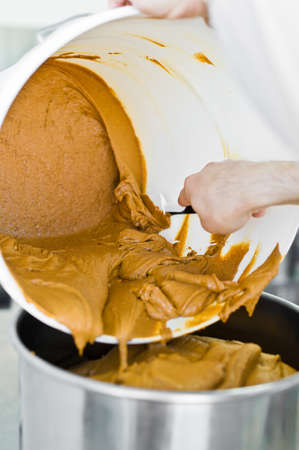 Peanut butter production, industrial mixer, food industry, conveyor line