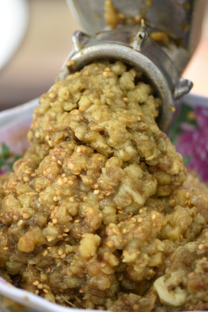 Chopped and fried eggplant pieces for eggplant meal