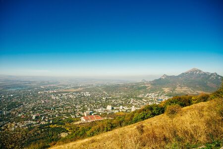 View from the mountains to the town of Zheleznovodsk. Caucasian Mineral Waters. Russia.