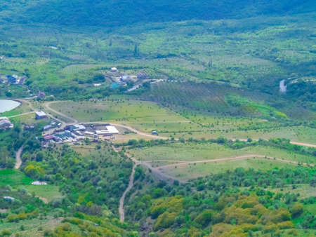 Eco travel in Georgia in green fields and mountains tourism