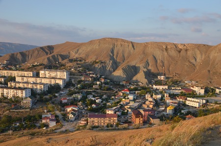 SUDAK, CRIMEA - August, 2019: City view from the hill