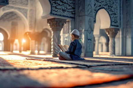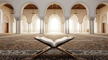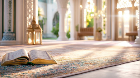 Quran - holy book of muslims, scene in the mosque at Ramadan time