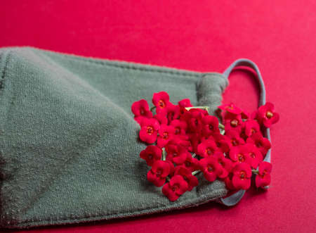 Medical concept mask and a branch of spring flowers symbol of hope.