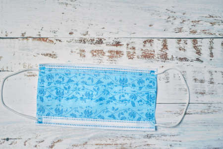coronavirus COVID-19 pandemic. antiviral medical mask for protection against corona virus. Surgical protective mask. Medical respiratory bandage face on white background. quarantine, stay at home. on blue background
