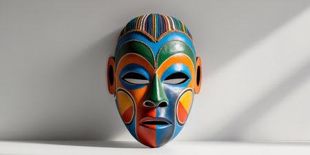 AI Generated. Colorful Traditional African Mask Depicting Duality of Spirits for Cultural Art Designs