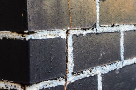 Rough brick wall painted in black with painting seams in white. Abstract background