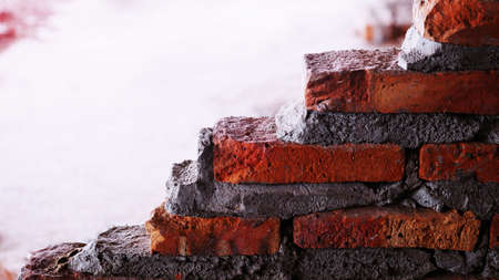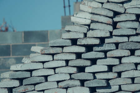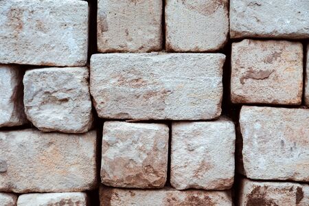 Construction brick at cement background. Stack of bricks and wall texture or floor